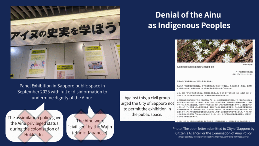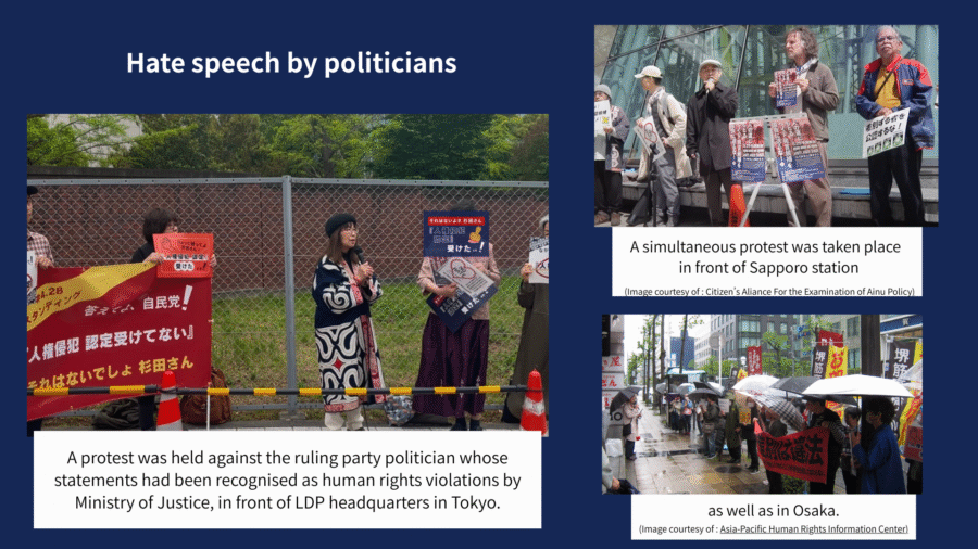 Human rights are under threat all over the world, and Japan is no exception.  The following panels offer a glimpse into the realities of racial discrimination and the ongoing struggle for justice in Japanese society. (*For more details, please click each panel.)